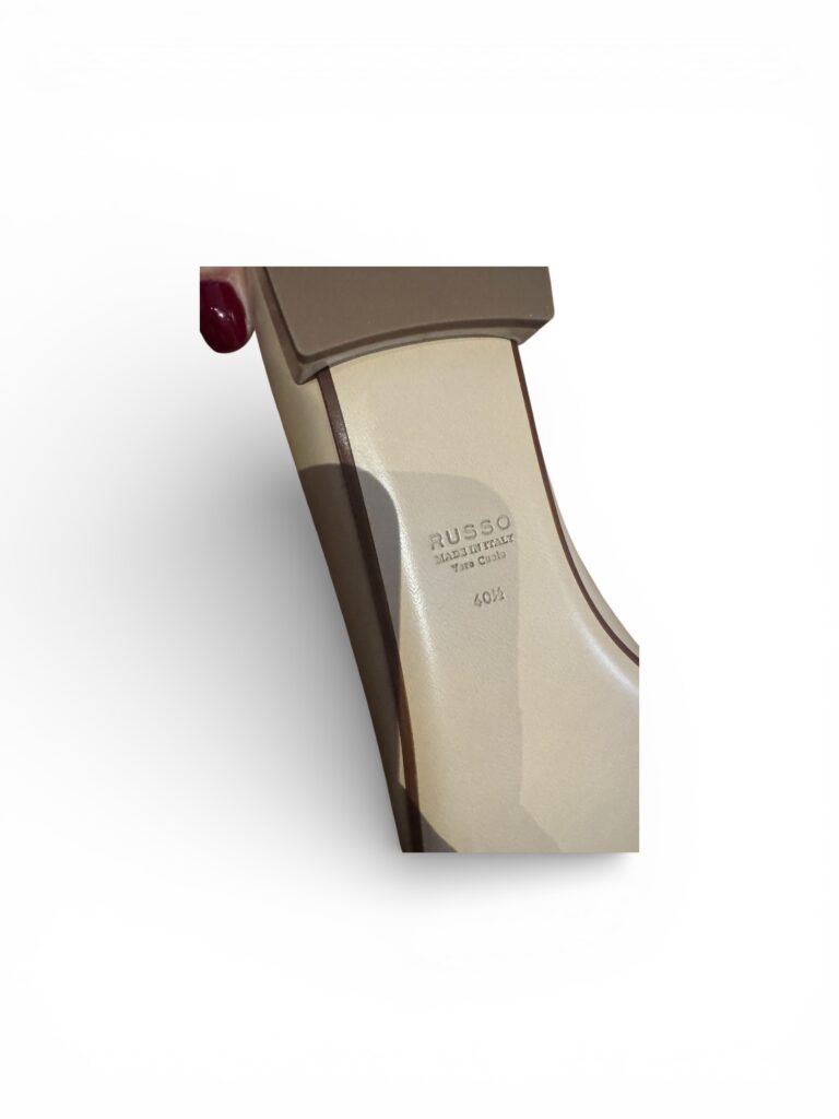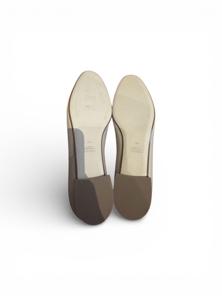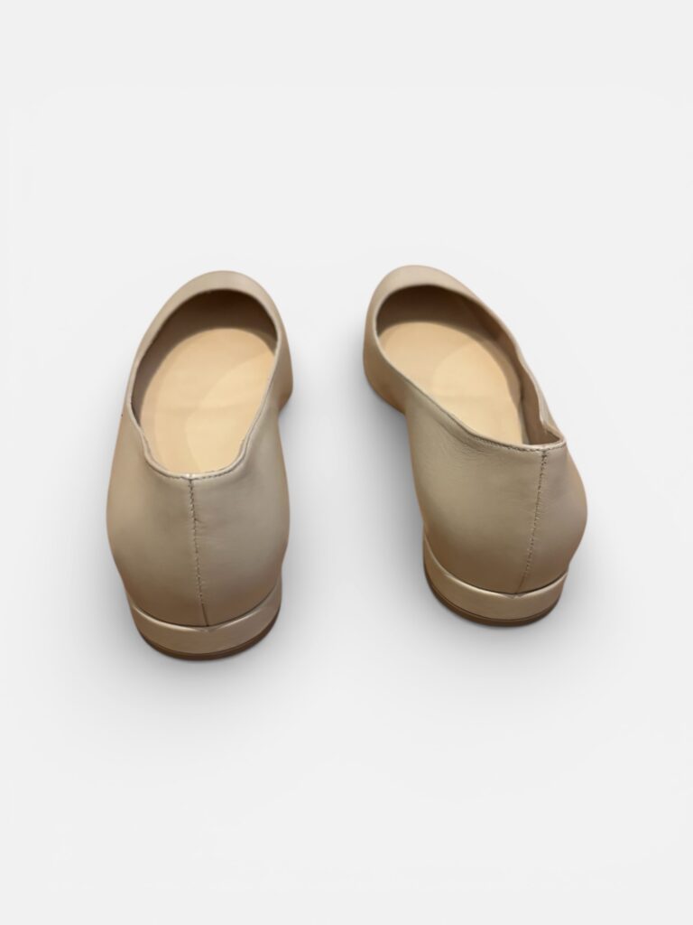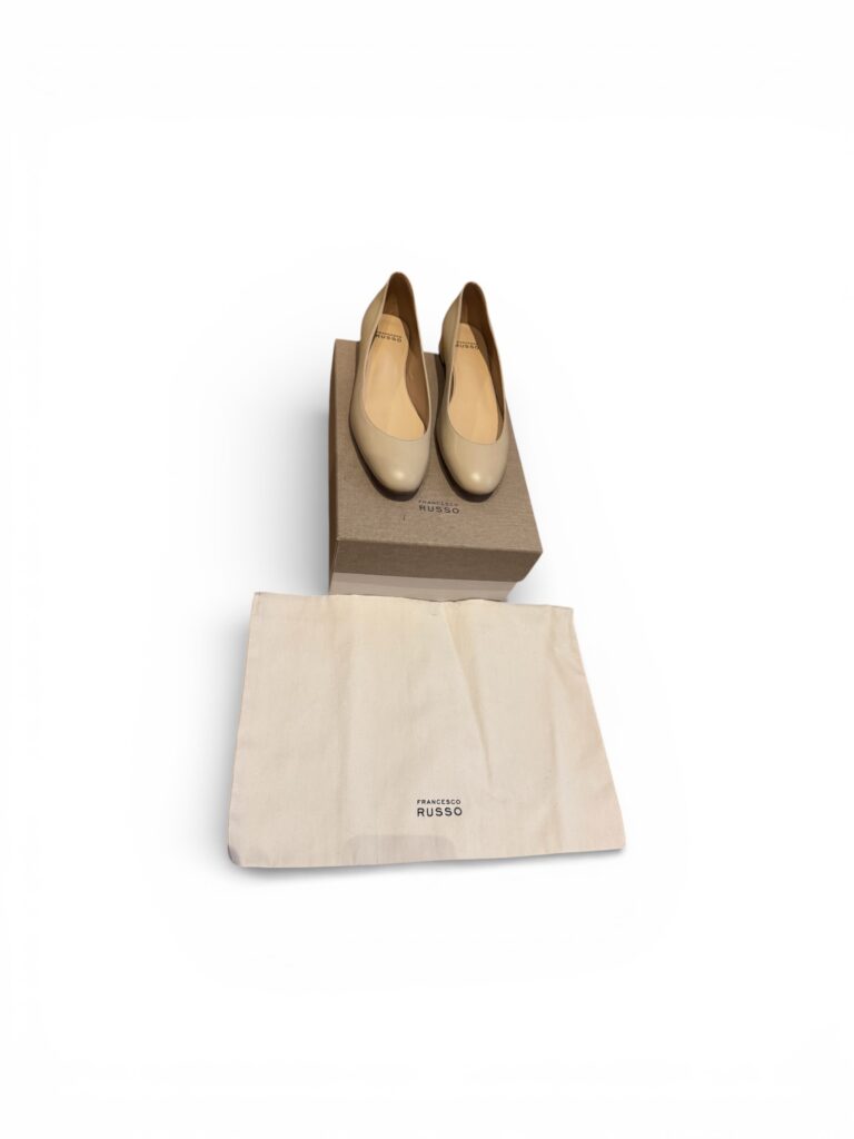 Élégantes ballerines Francesco Russo en cuir nappa beige “Dust”. Ligne épurée et intemporelle, cuir souple de grande qualité, petit talon discret pour un confort optimal au quotidien. Fabrication italienne. Modèle chic et facile à porter, aussi bien avec un jean qu’une tenue plus habillée.