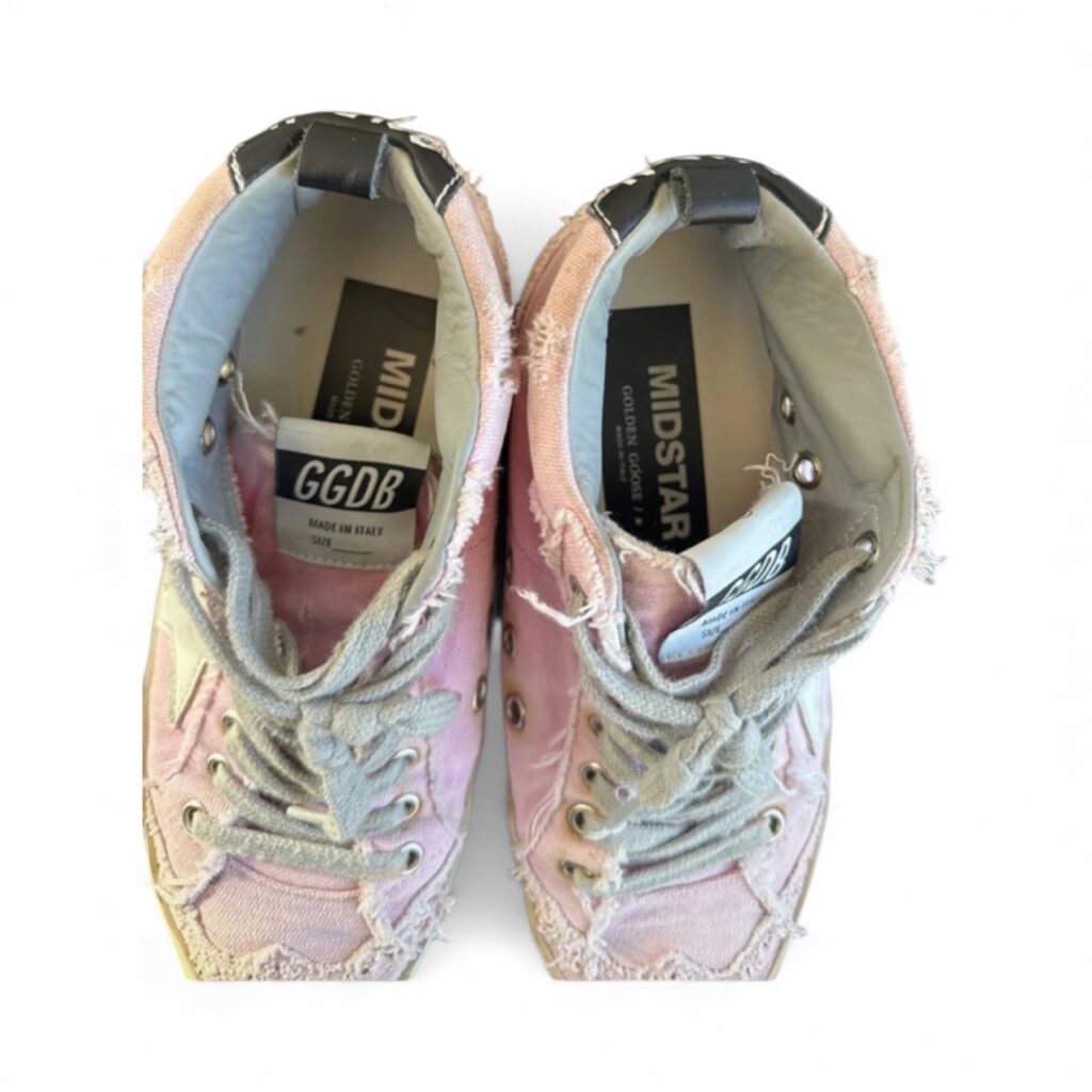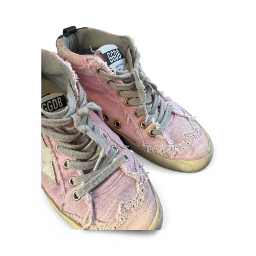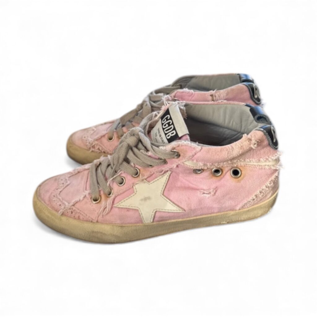 Golden Goose Mid Star – Baskets montantes toile rose “destroy”