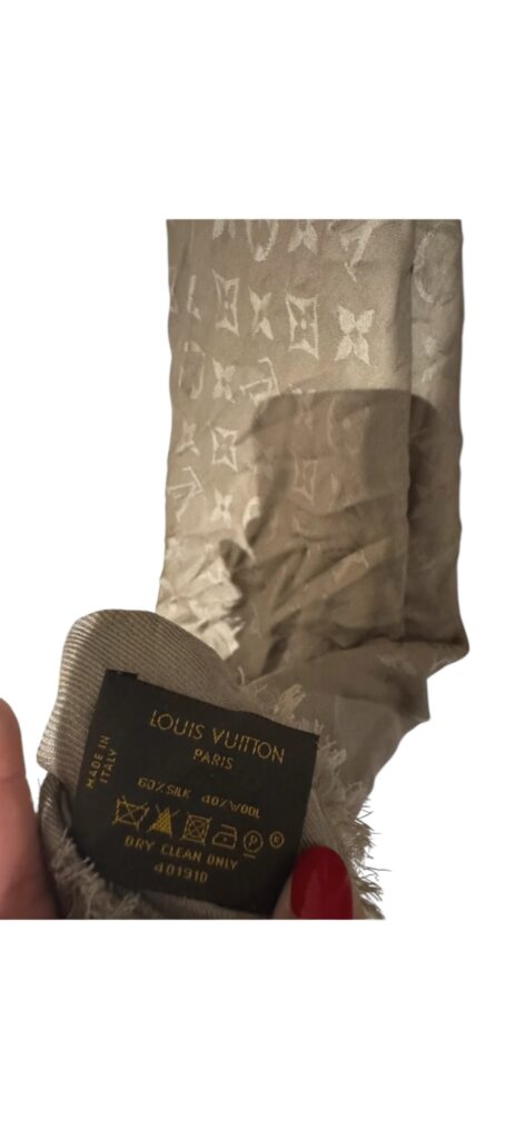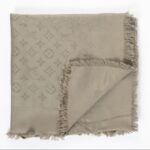 Grand châle Louis Vuitton Monogram – Soie & laine – Taupe chic