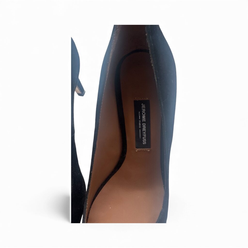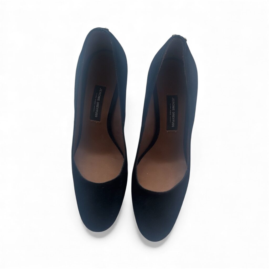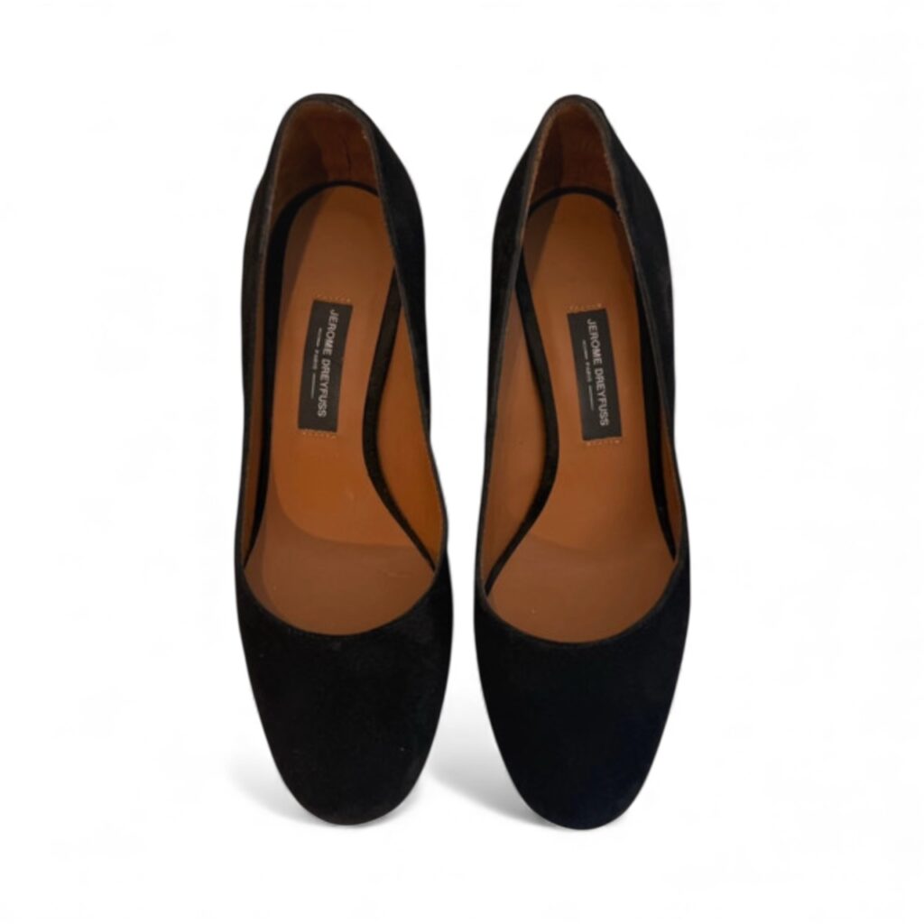 Superbes escarpins en daim noir de la maison Jérôme Dreyfuss, élégants et intemporels.
