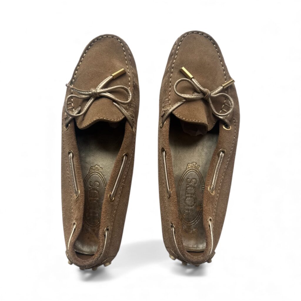 Mocassins Tod’s en daim beige, taille 35,5.