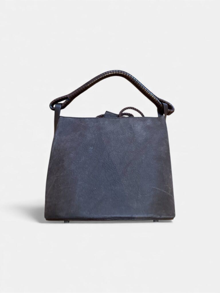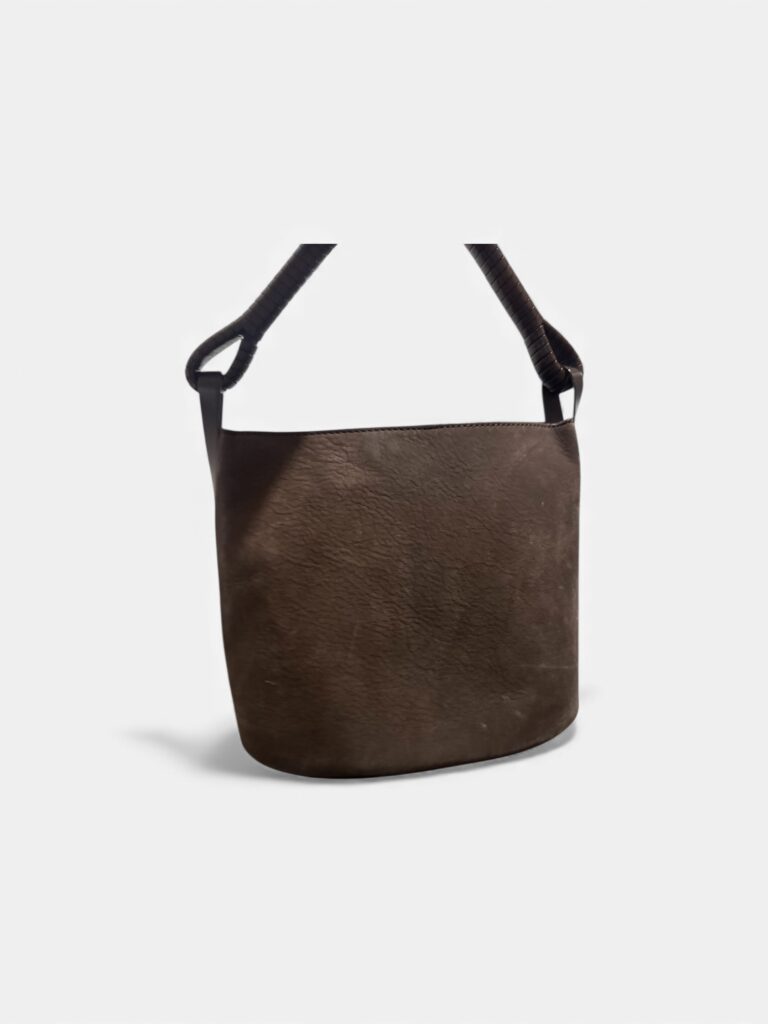 Sac seau Kenzo vintage en cuir marron – poignée rigide gainée”
