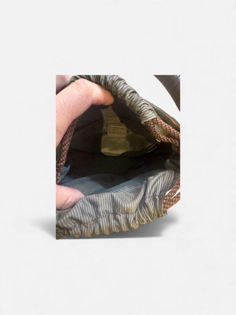 Élégant sac seau Kenzo au charme vintage, confectionné en cuir marron de belle qualité. Sa forme épurée est sublimée par une poignée rigide gainée, signature forte et graphique. L’intérieur est doté d’un pochon textile avec lien de serrage, apportant praticité et sécurité. Un modèle intemporel, à l’esprit bohème chic, facile à associer aussi bien avec un look casual que plus habillé.