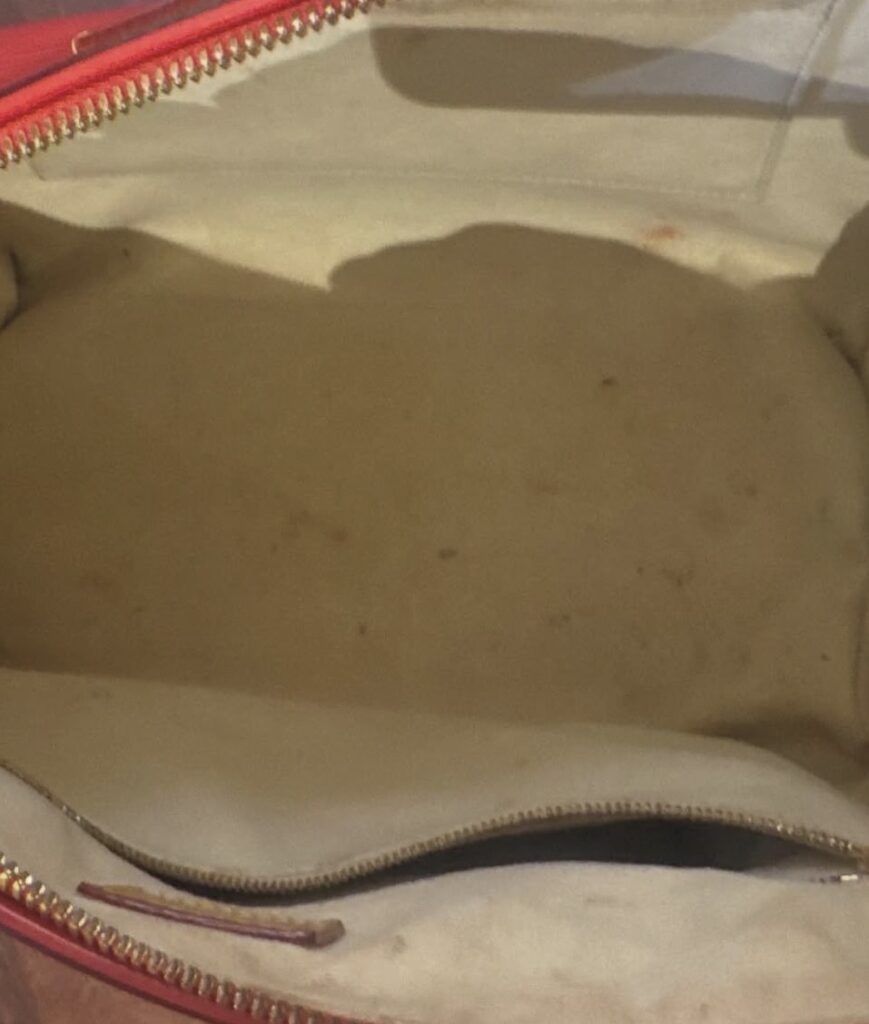 • Intérieur : présence de taches sur la doublure en tissu (non visibles une fois le sac porté, n’altèrent pas l’usage)
