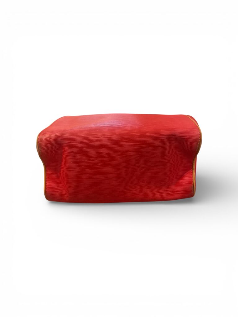 Superbe sac Louis Vuitton en cuir Épi rouge, un modèle iconique de la Maison, à la fois élégant, intemporel et structuré. Son format idéal en fait un sac parfait pour un usage quotidien comme pour une tenue plus habillée.