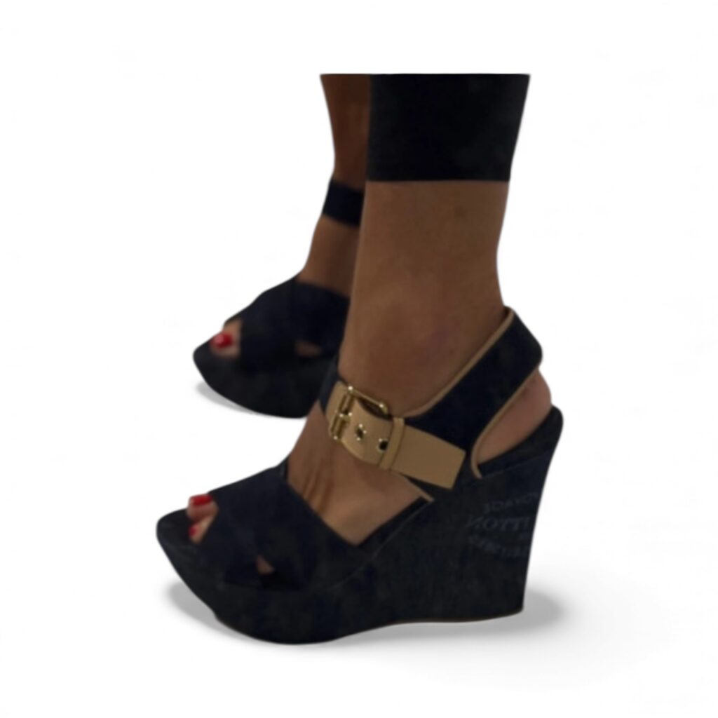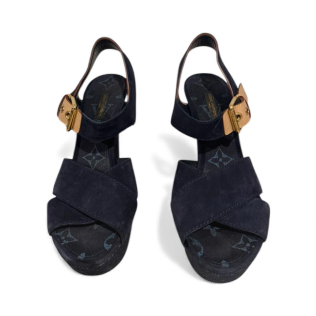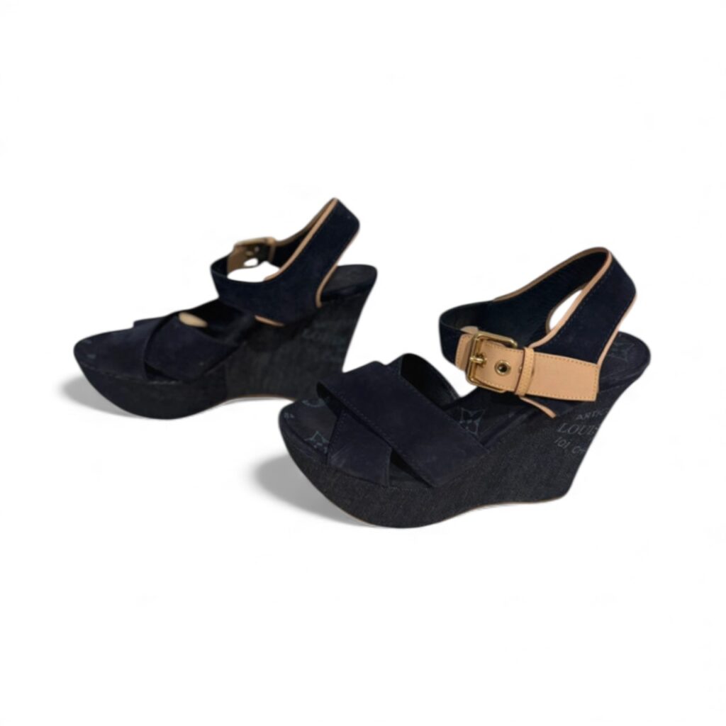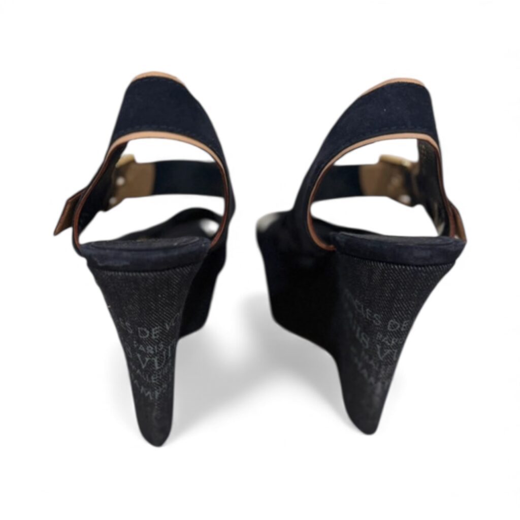 Découvrez ces magnifiques sandales compensées Louis Vuitton “Monogram Denim Wedge”, taille 40,