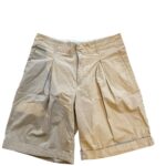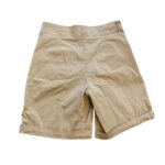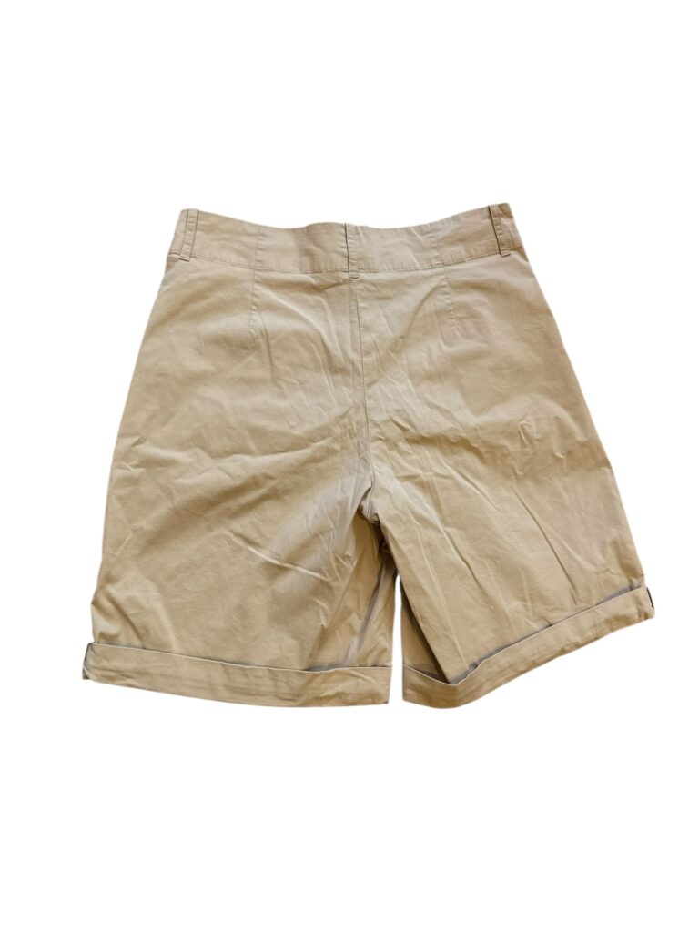Short Filippa K coloris beige/sable, coupe droite légèrement ample avec plis sur le devant et ourlets retroussés. Taille classique avec passants pour ceinture, poches latérales.
