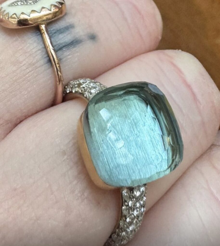 Bague Pomellato Maxi Nudo en or & diamants – aigue-marine iconique