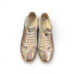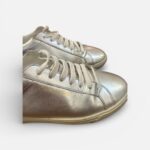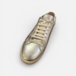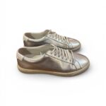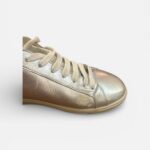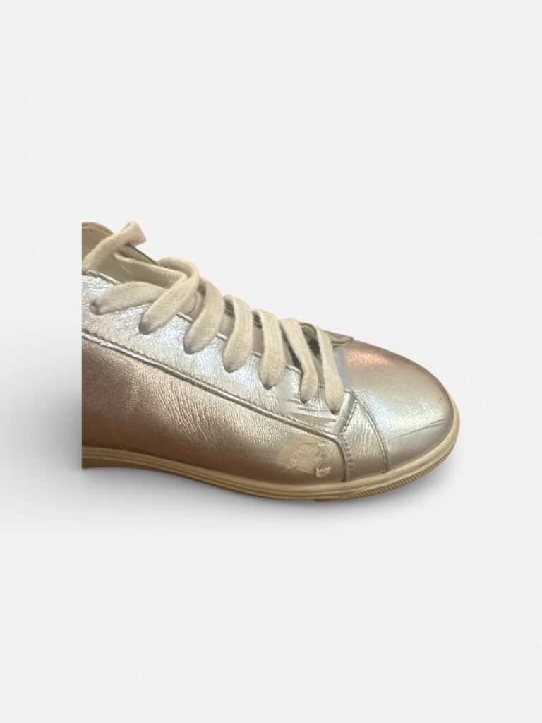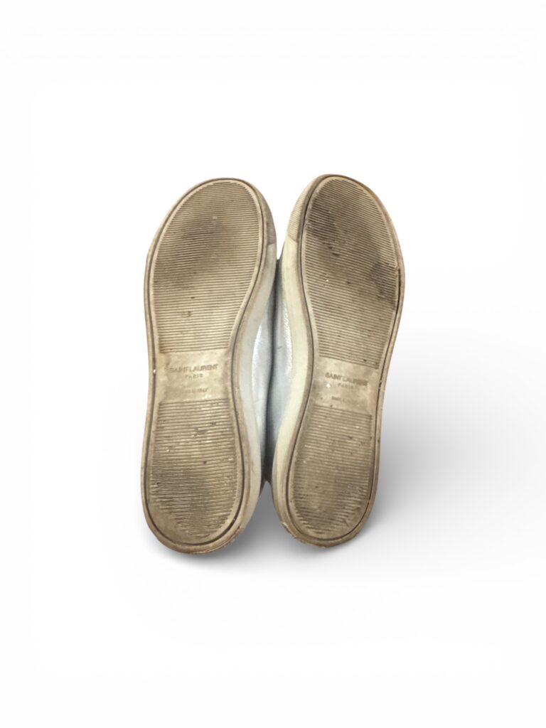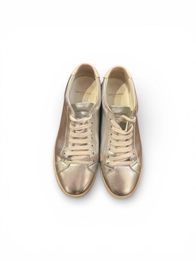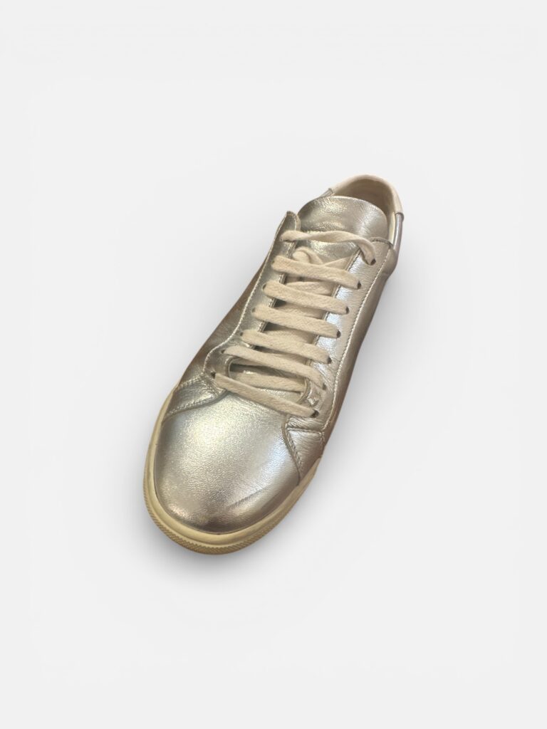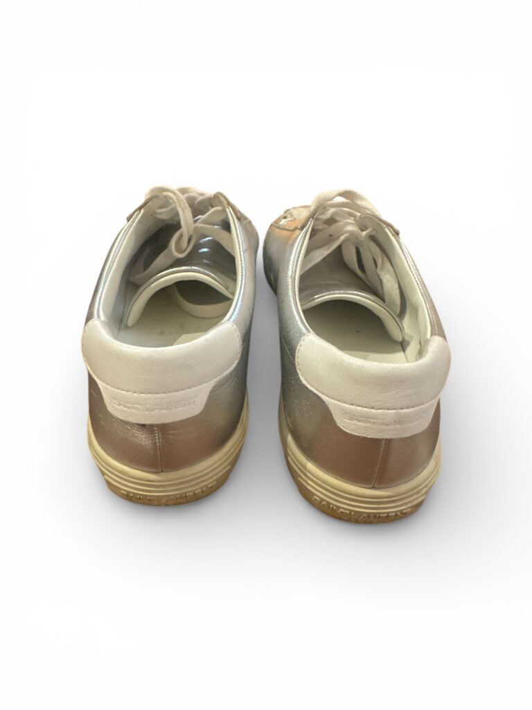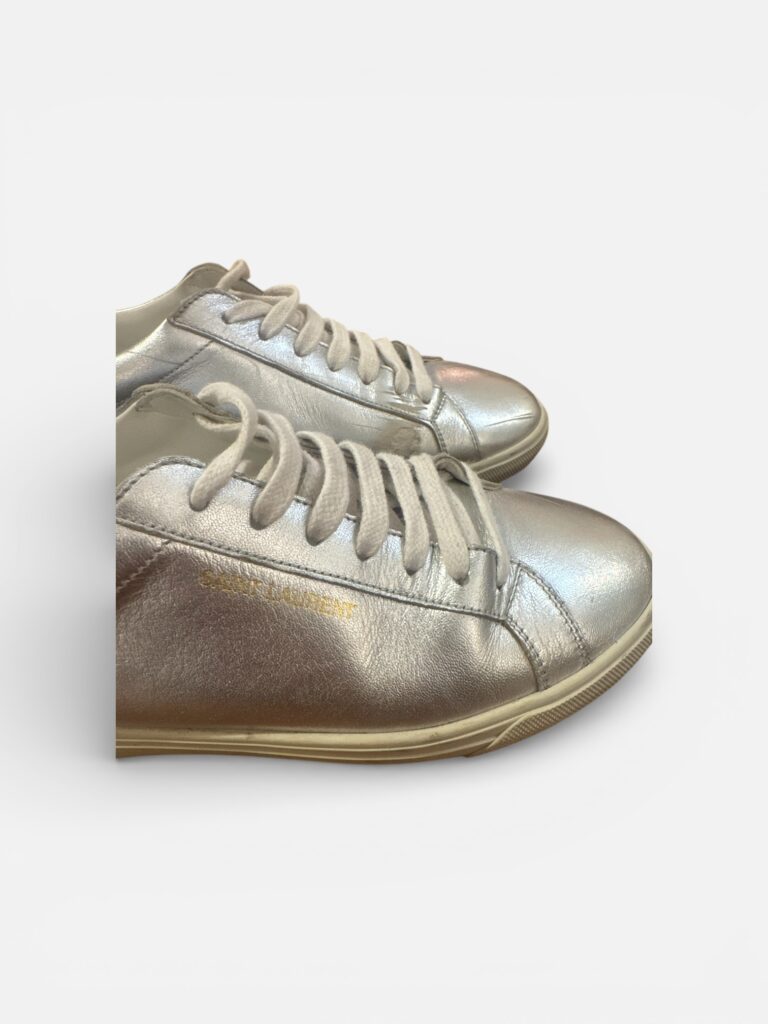Baskets basses Saint Laurent Paris en cuir métallisé argenté.