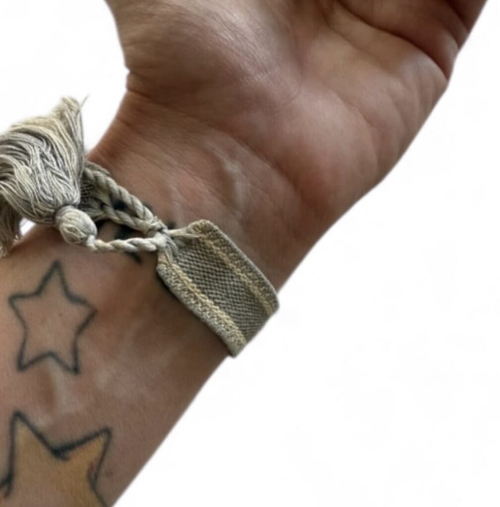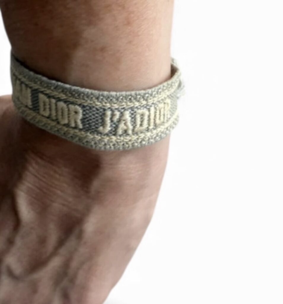 Bracelets Dior “J’Adior Friendship Bracelet” en tissu brodé, coloris neutres et pastel.