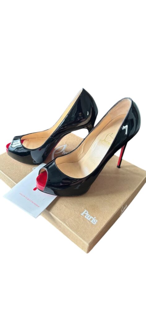 Christian Louboutin Lady Peep Vernis Noir – L’iconique semelle rouge