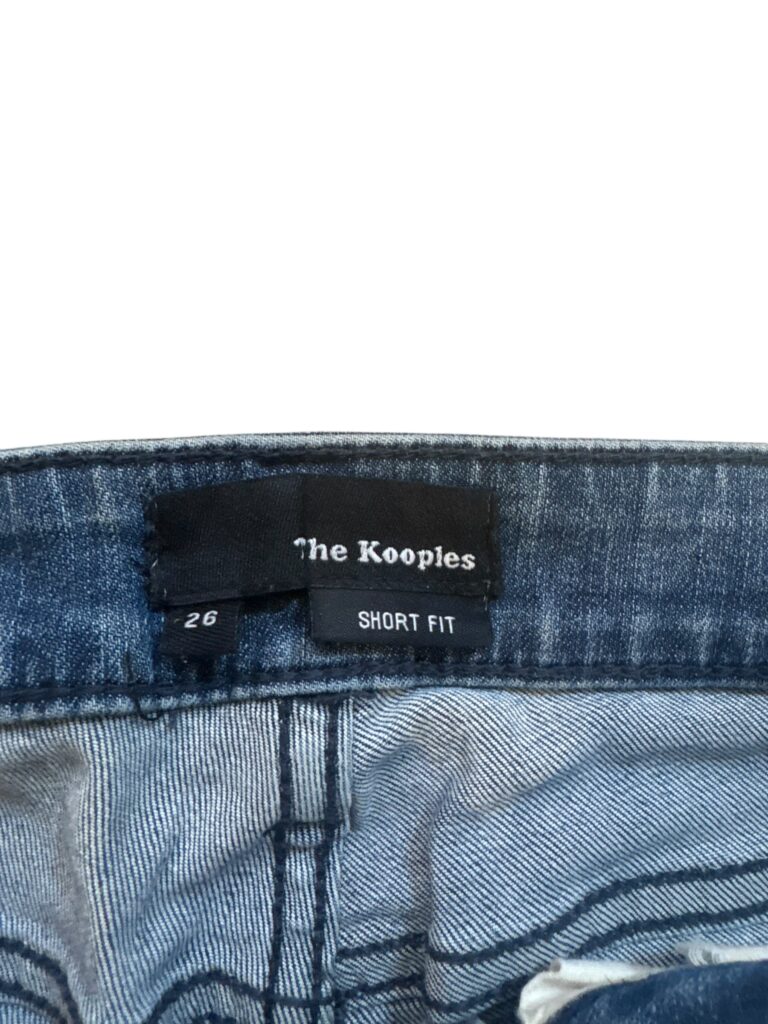 Jean The Kooples en denim bleu délavé, coupe slim / short fit.