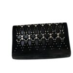 Élégante et iconique, cette pochette Alaïa en cuir noir découpé laser et clouté incarne parfaitement l’esthétique graphique et sensuelle de la Maison Alaïa. Un modèle intemporel, chic et audacieux, idéal pour sublimer une tenue de soirée comme un look plus minimal en journée.