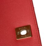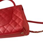 – Poignée rigide, bandoulière chaîne entrelacée de cuir. Intérieur avec poche zippée, marqué “Chanel Made in Italy”.