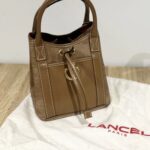 Mini sac Lancel en cuir et toile – Marron / Camel