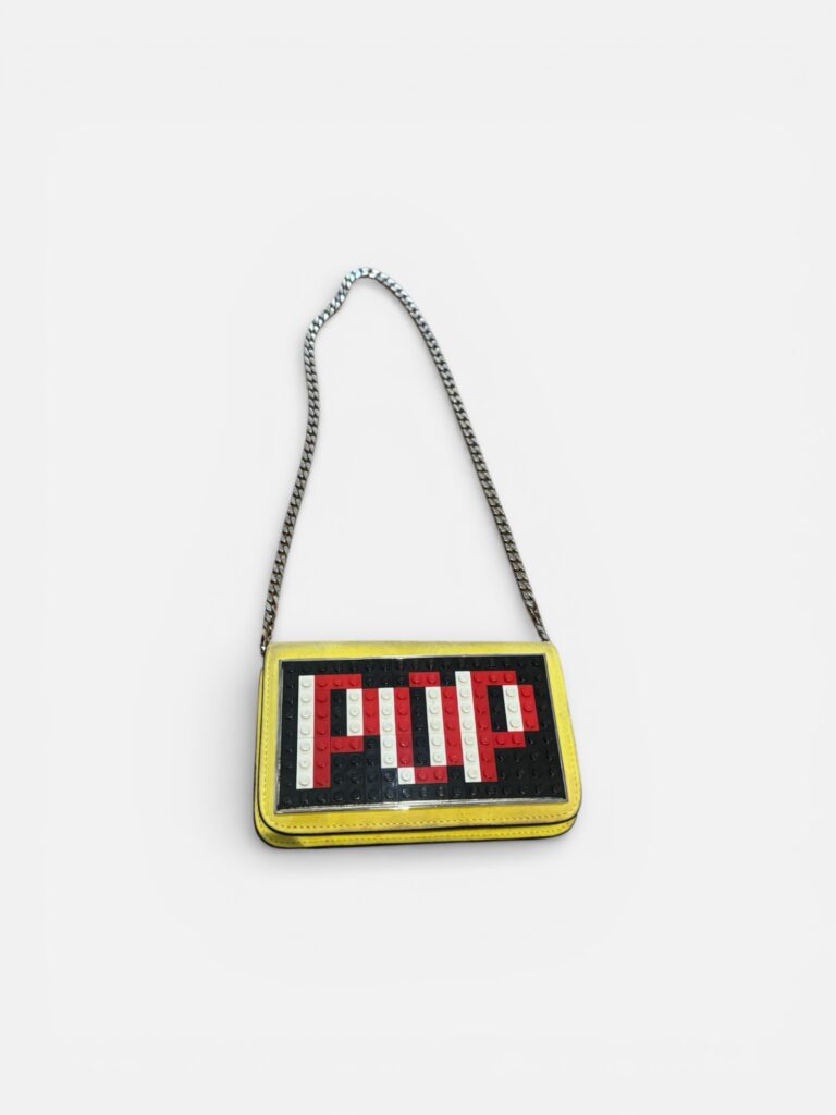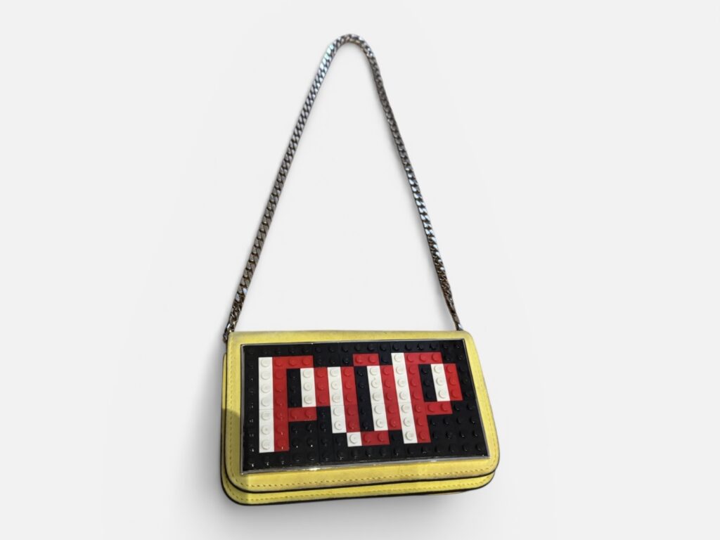 Sac porté épaule / bandoulière Les Petits Joueurs, modèle iconique avec plaque LEGO “POP” sur le devant.