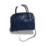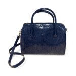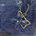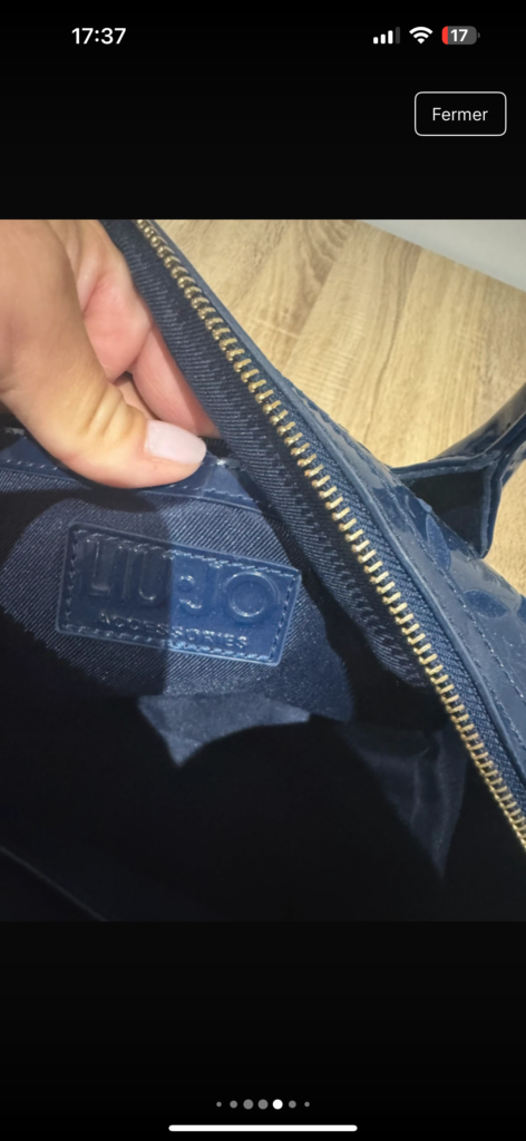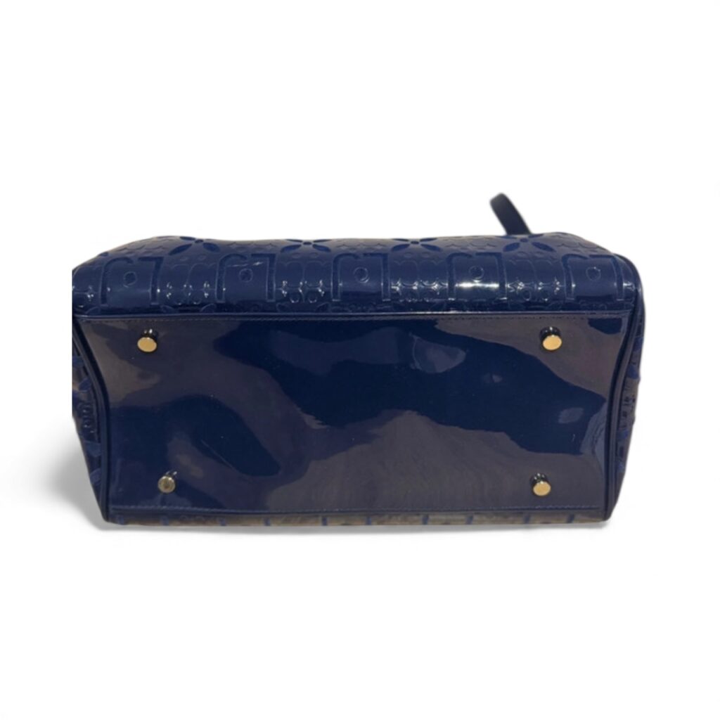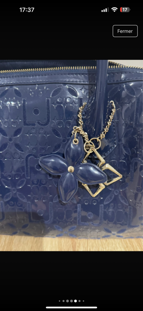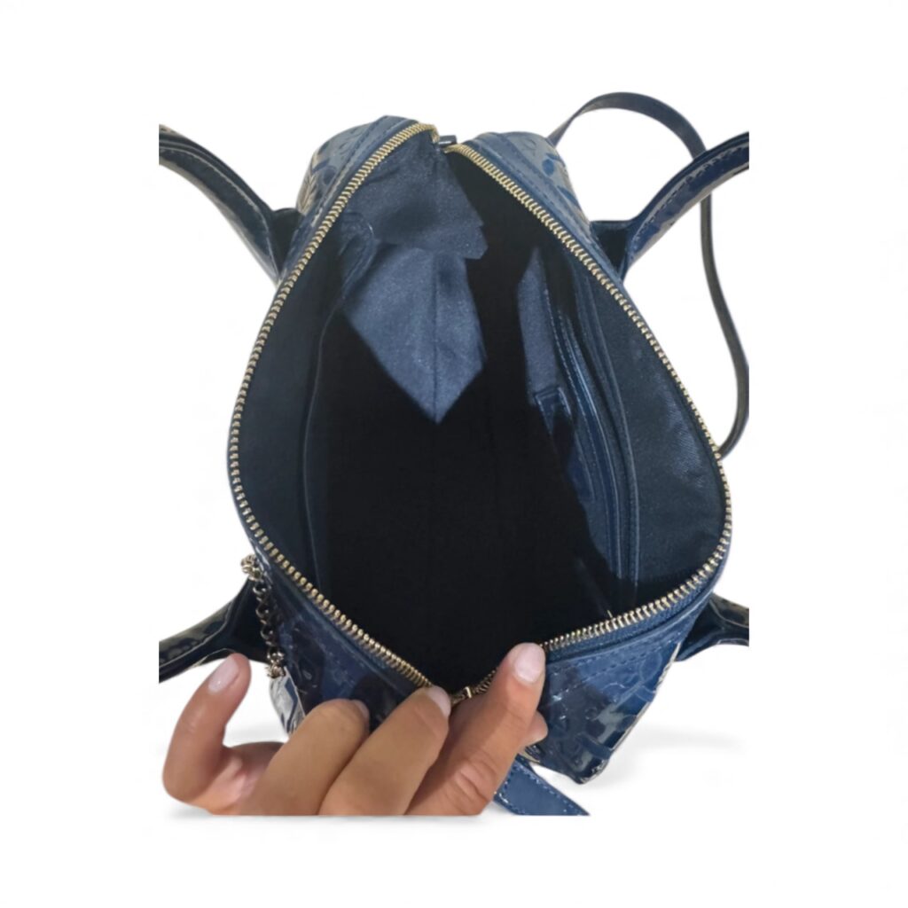 Magnifique sac Liu Jo en simili cuir verni bleu marine, embossé du monogramme iconique de la marque.