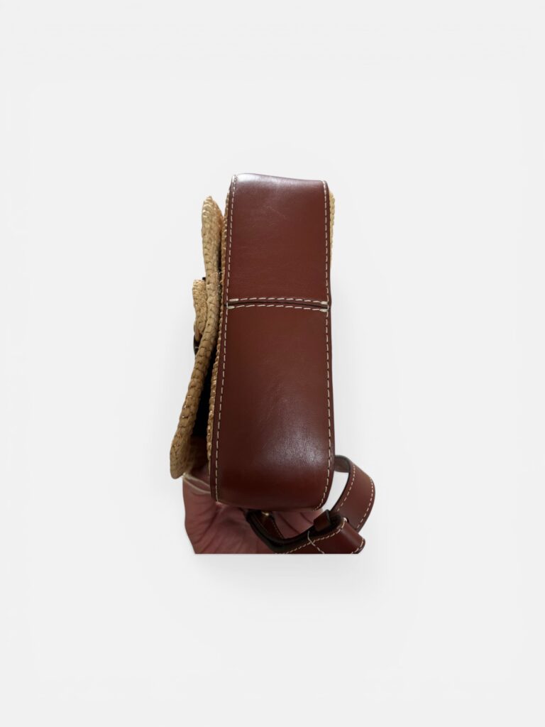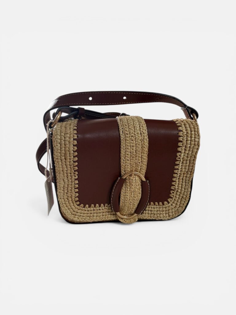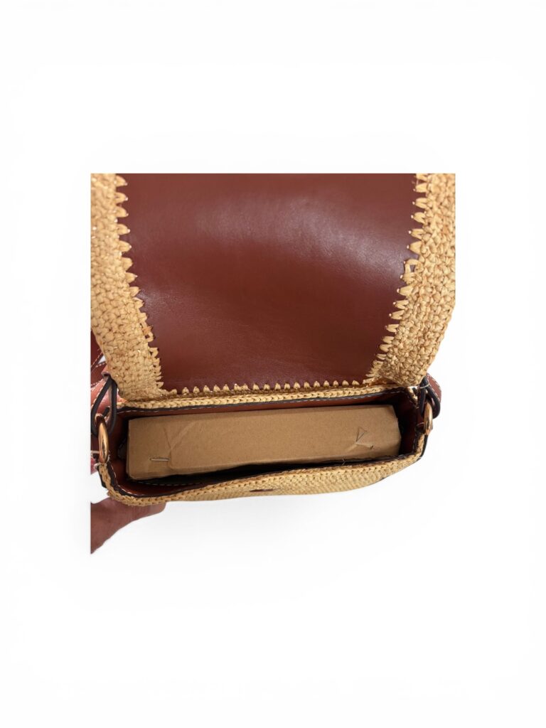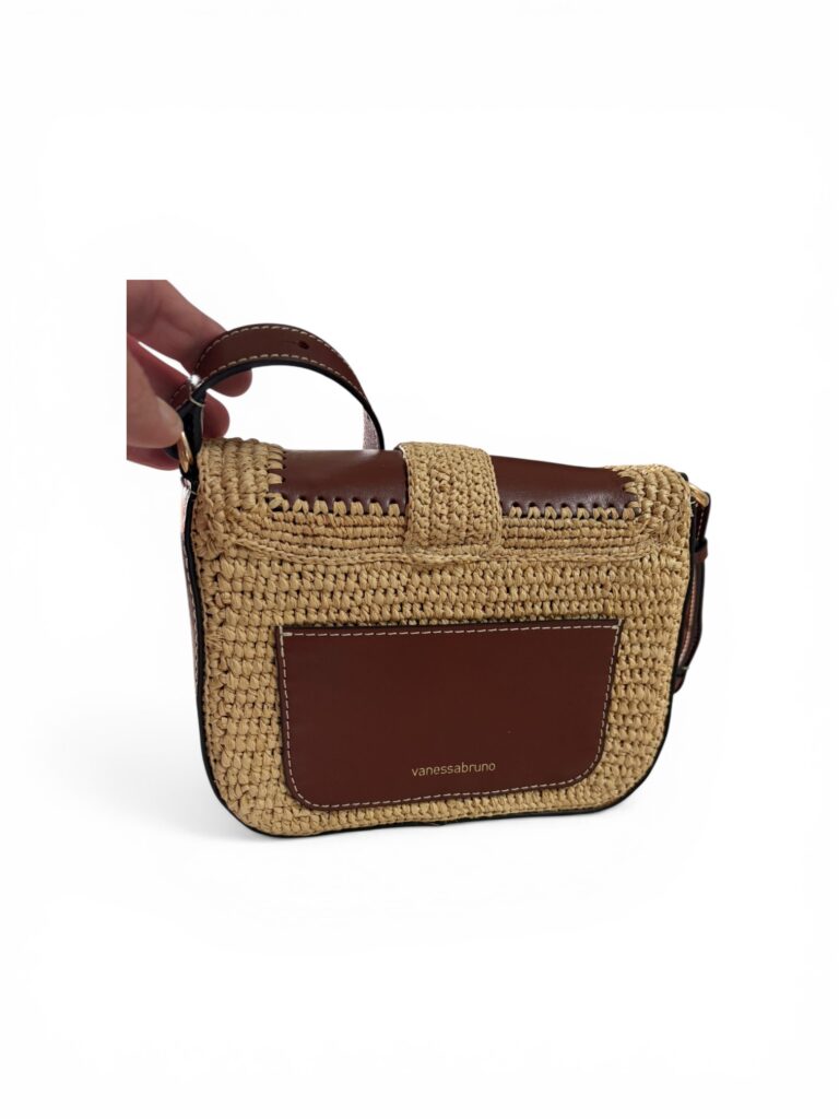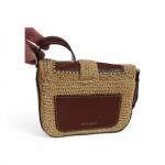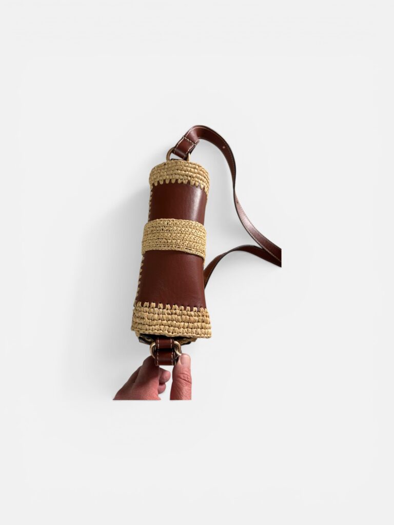 Vanessa Bruno – Sac bandoulière raphia & cuir cognac, neuf avec dustbag d’origine