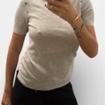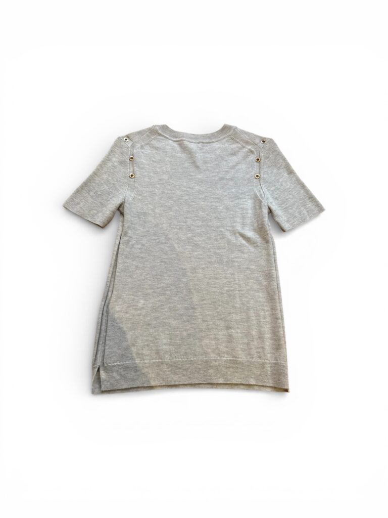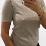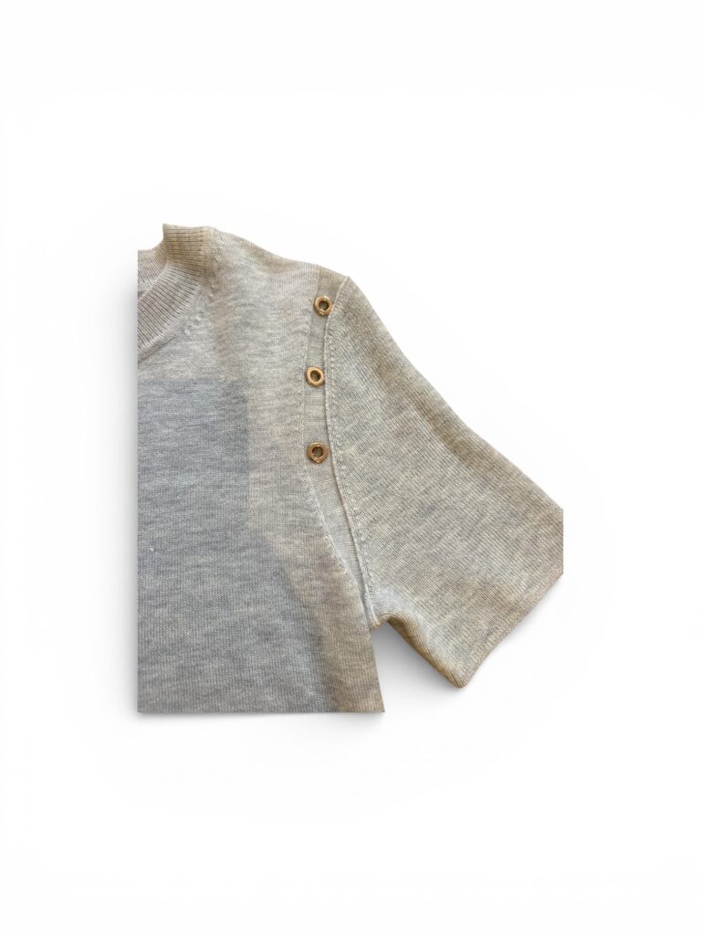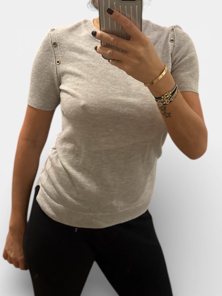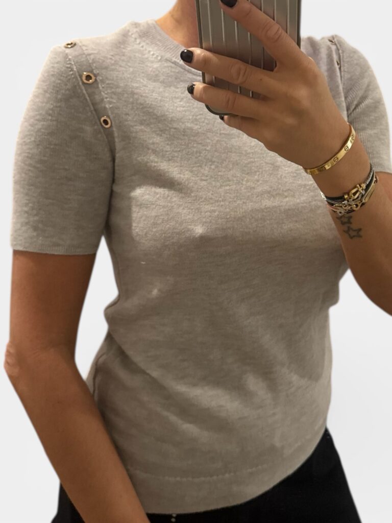 Coupe près du corps très flatteuse, col rond et détails de boutons dorés aux épaules qui apportent une touche chic et élégante.